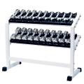 ラック付きのセット。6kg~10kgはグリップ部分が回転するので手首に優しい造りとなっています。
